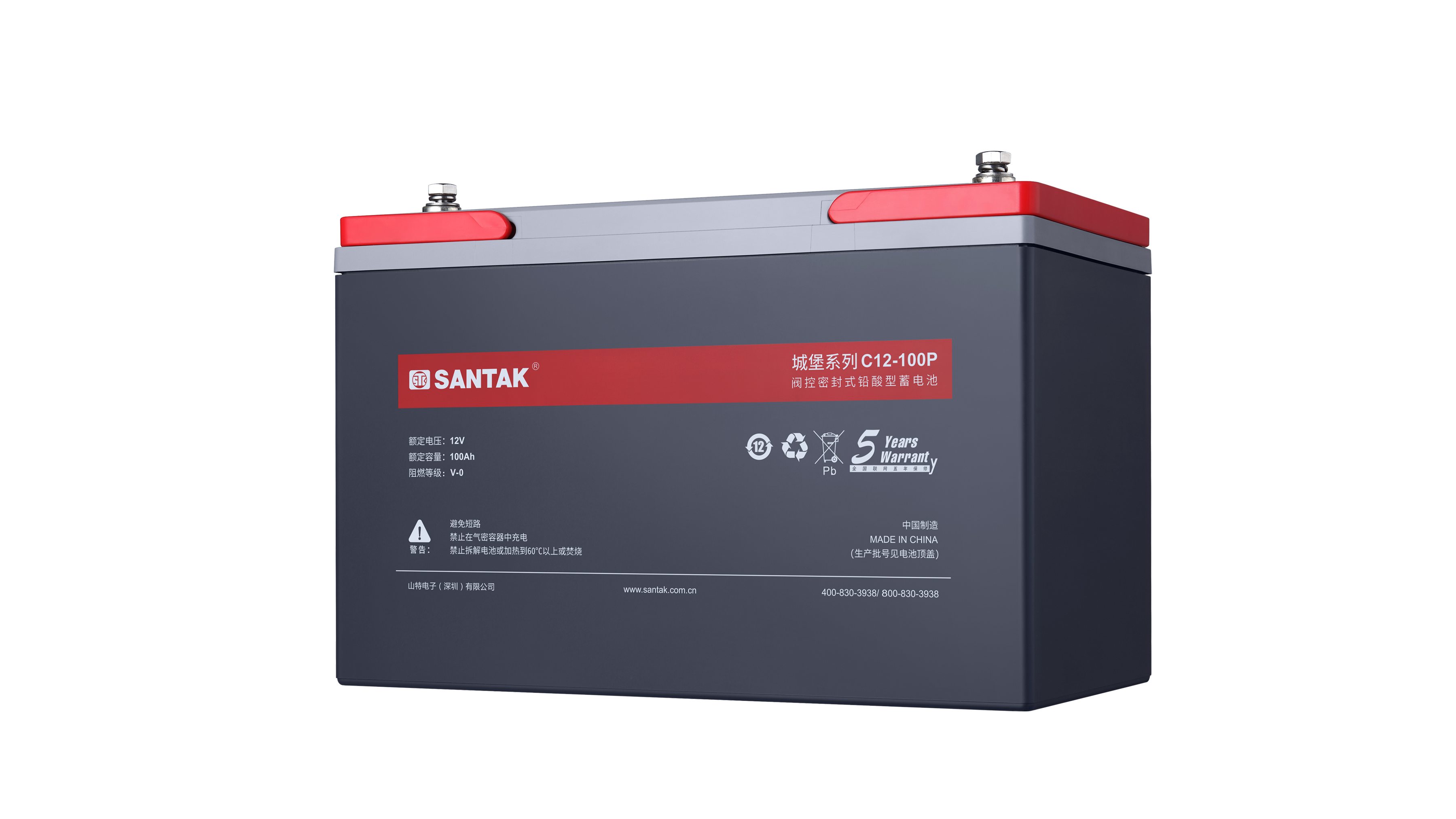 - 优化电池极板合金材质配比,高密度耐腐蚀板珊筋条设计,设计寿命长达12年,保修期5年
